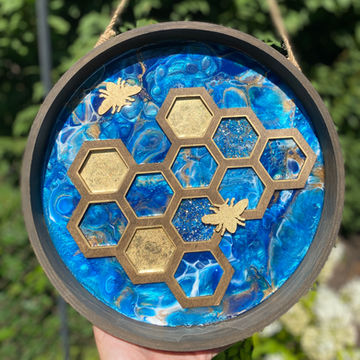It gives me great pride to create magical art to bring people joy. I do this by allowing myself freedom to explore different mediums and avenues of creativity, including resin, clay, and acrylics. Abstract resin art is my specialty, highlighting celestial, geode, pollinator, and ocean themes.